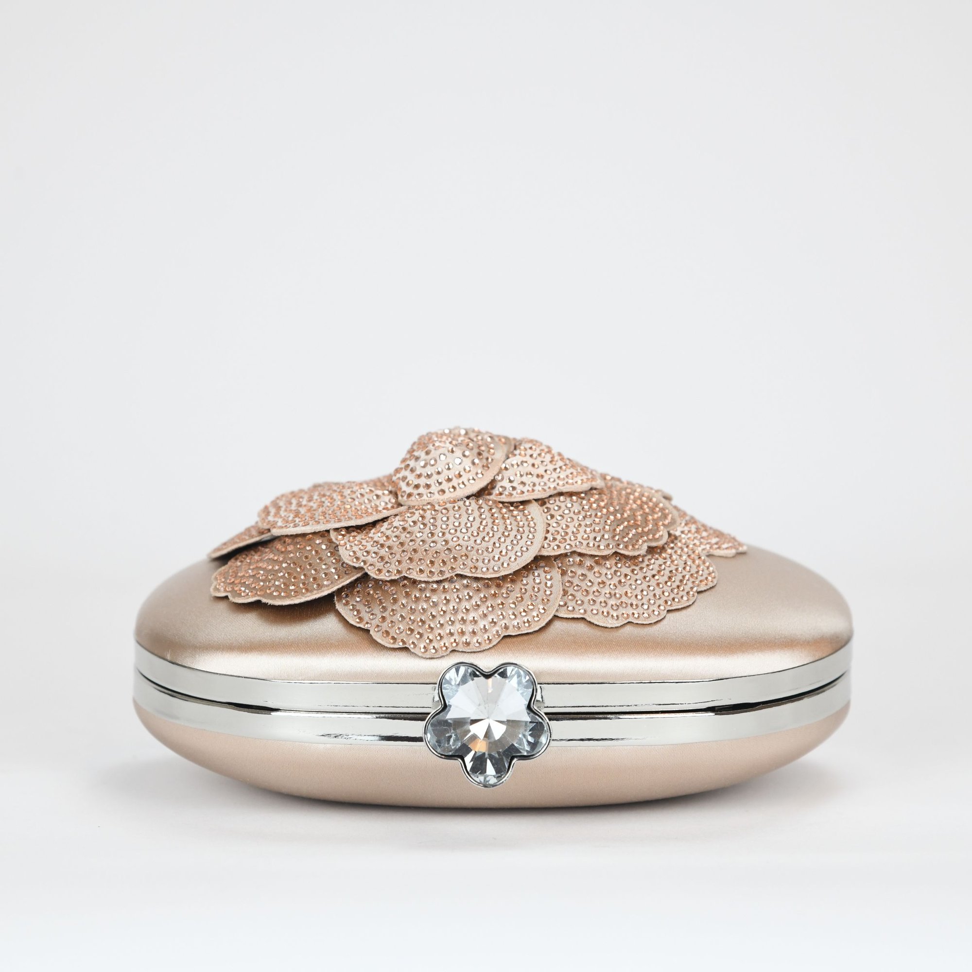 Nina Crystal Embellished Flower Minaudiere Handbag - Pearl Rose