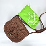 This Sam Edelman saddle bag is a testament to exquisite craftsmanship, featuring a stunning die-cut double E signature pattern on premium leather. The modern design is elevated by the thick, guitar-style strap, adding a contemporary edge.